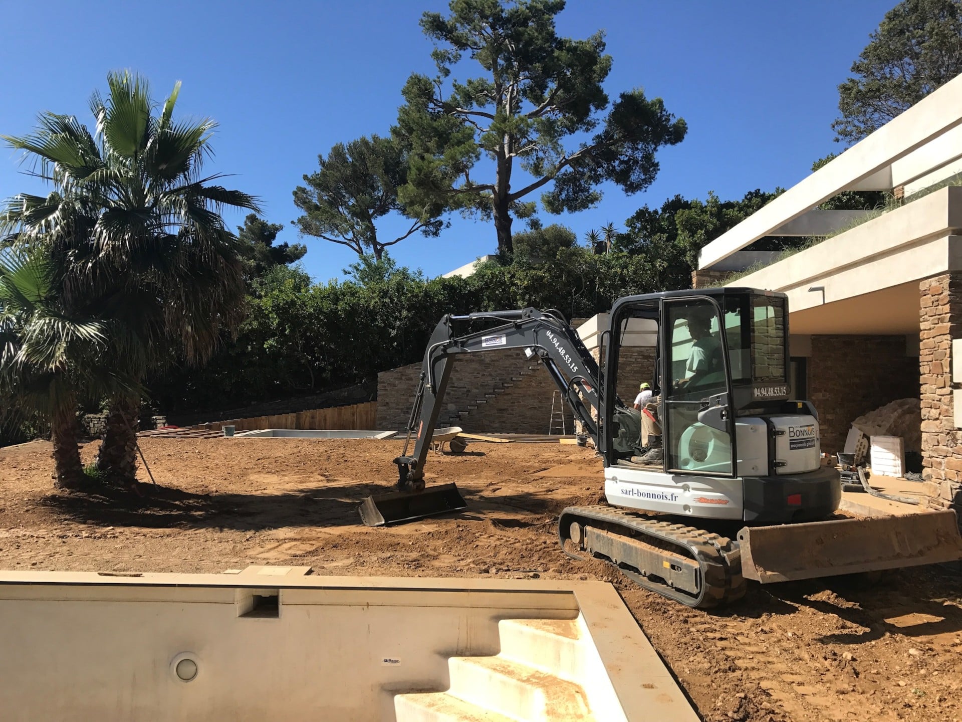 La SARL BONNOIS assure tous vos travaux de terrassement, qu'il s'agisse de préparer le terrain pour la construction de votre villa ou d'intervenir dans des zones d'accès difficile.